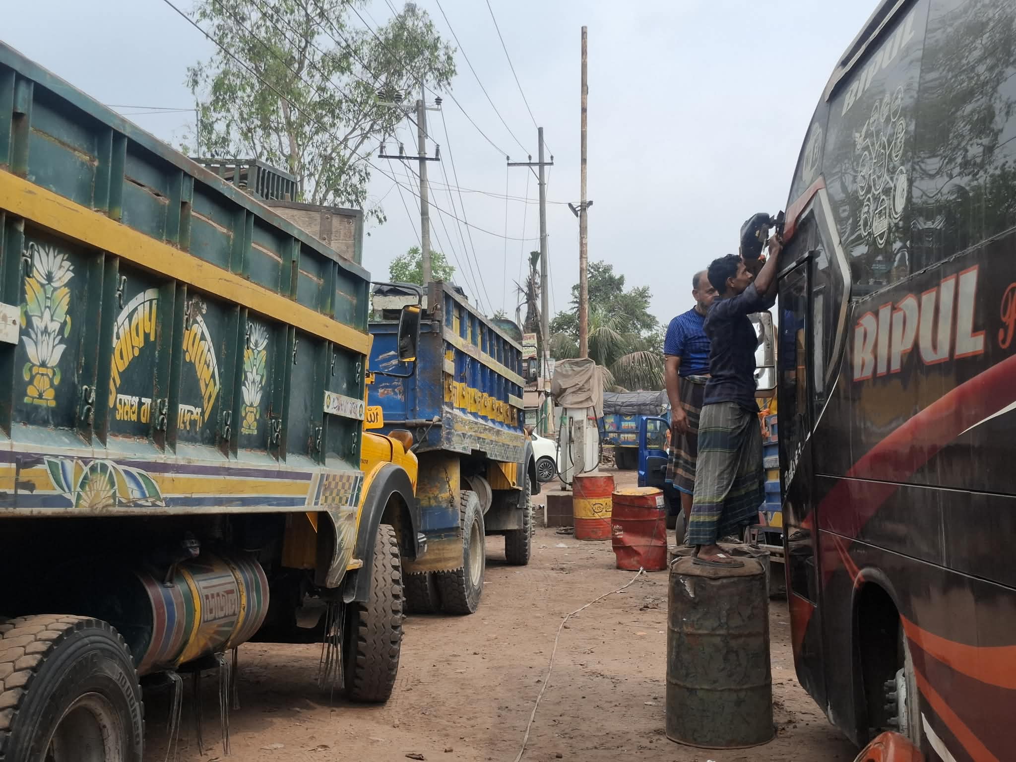 ঈদযাত্রার আগেই জ্বালানি সংকট, ঢাকা-টাঙ্গাইল মহাসড়কে দীর্ঘ লাইনে চালকদের দুর্ভোগ